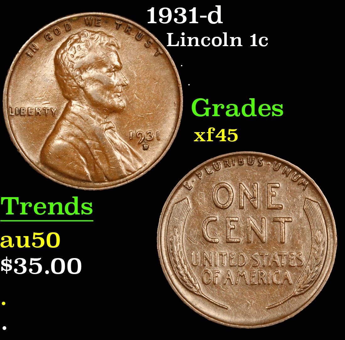 1931-d Lincoln Cent 1c Grades xf+.