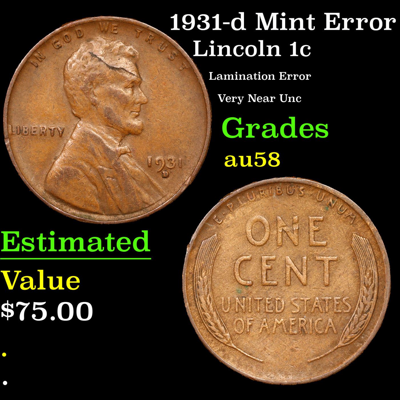 1931-d Lincoln Cent Mint Error 1c Grades Choice AU/BU Slider