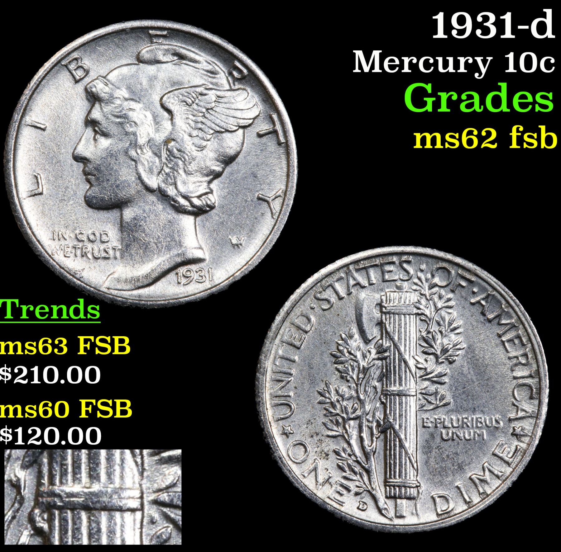 1931-d . . Mercury Dime 10c Grades Select Unc FSB.