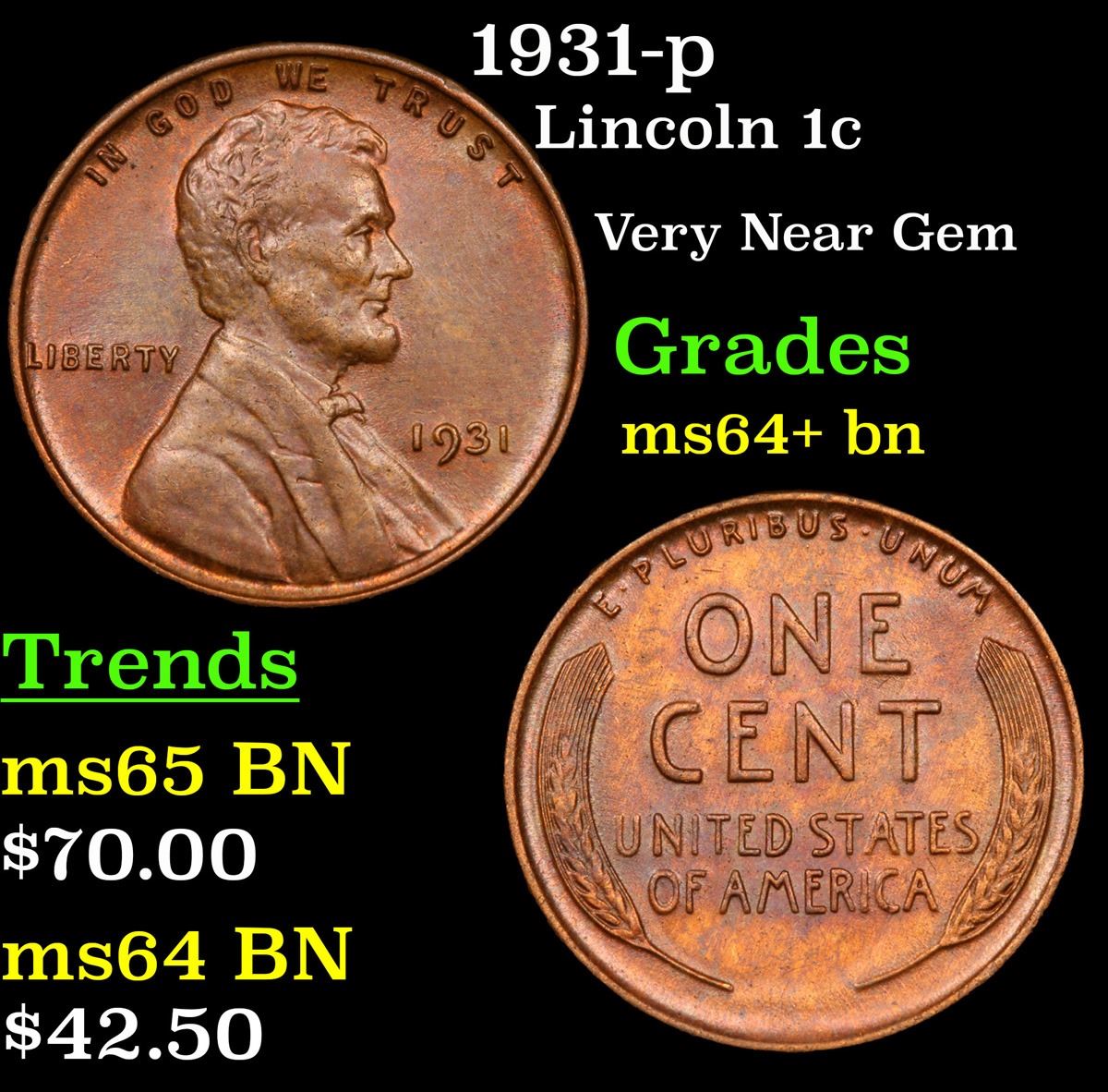 1931-p Lincoln Cent 1c Grades Choice+ Unc BN.