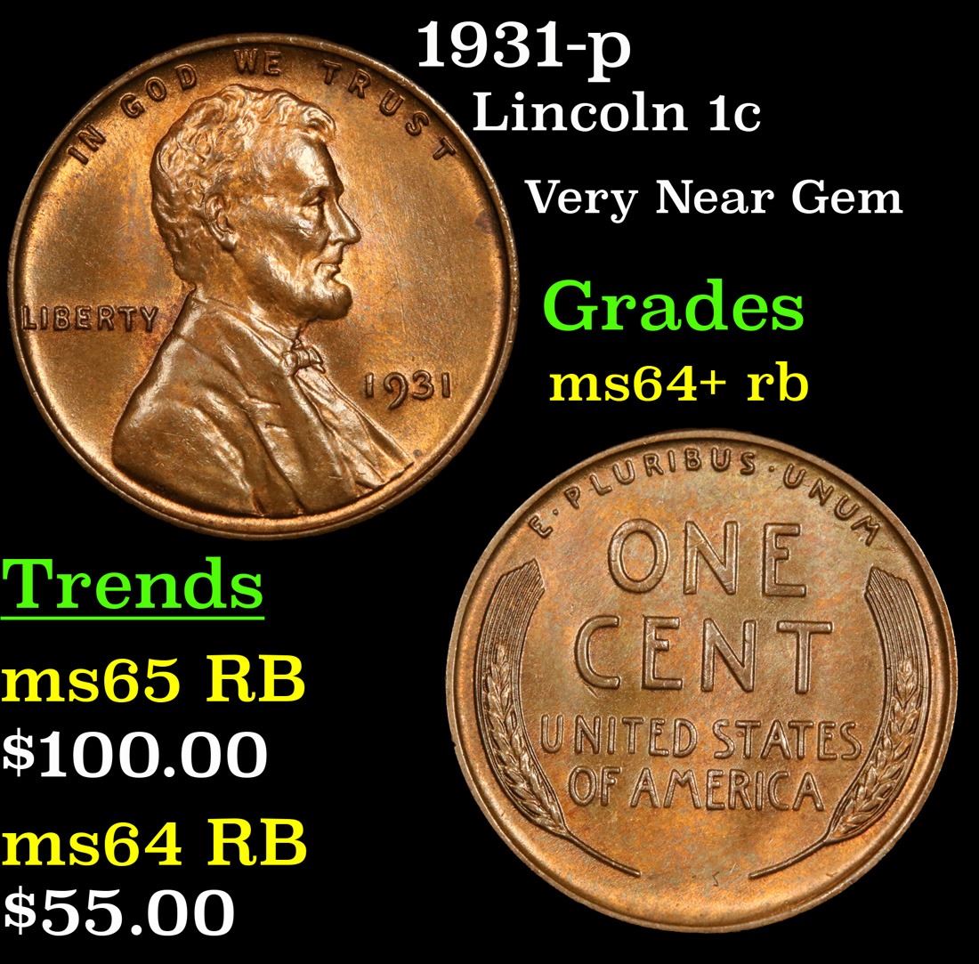 1931-p . Very Near Gem Lincoln Cent 1c Grades Choice+ Unc RB.
