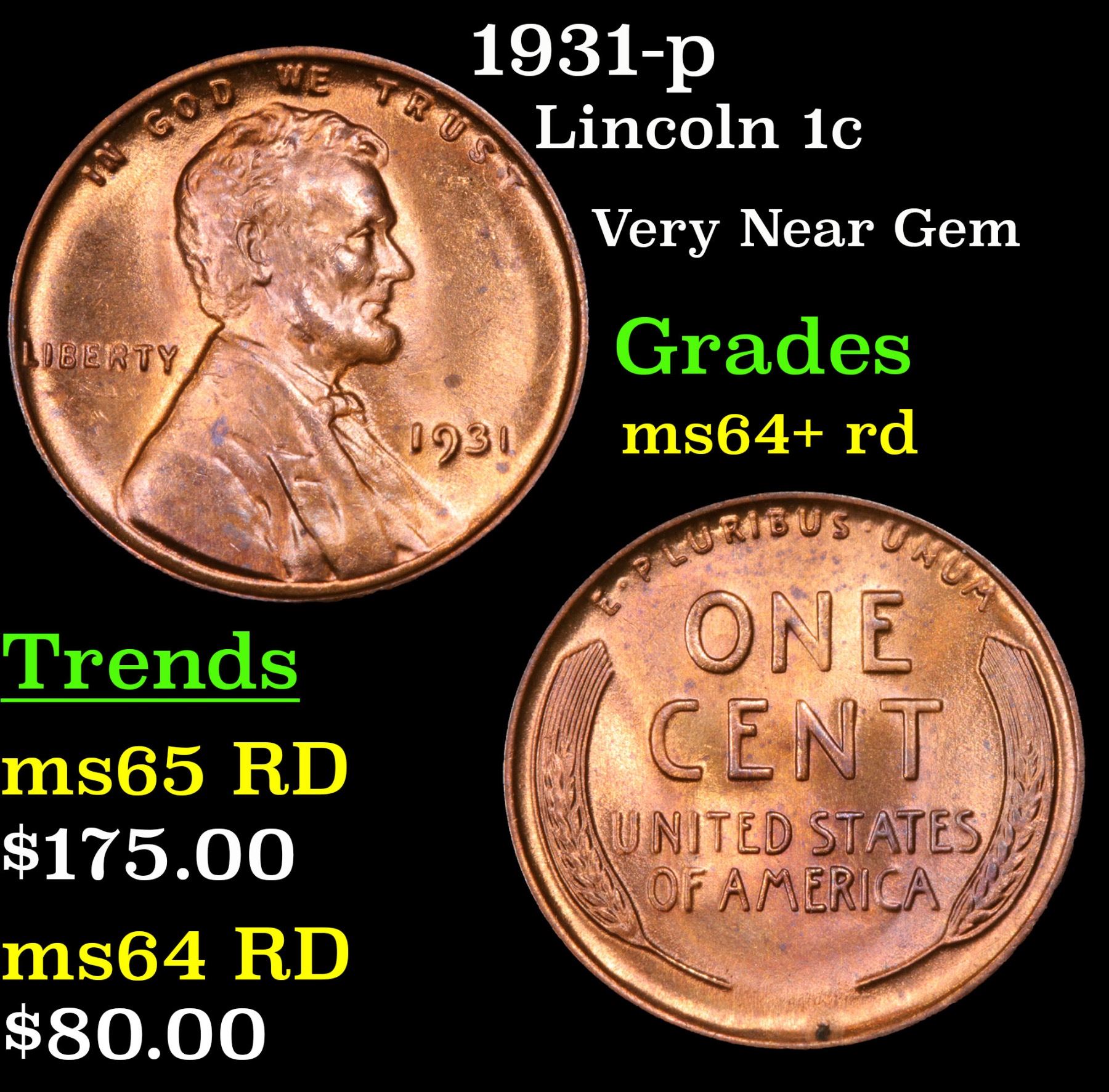 1931-p . Very Near Gem Lincoln Cent 1c Grades Choice+ Unc RD.