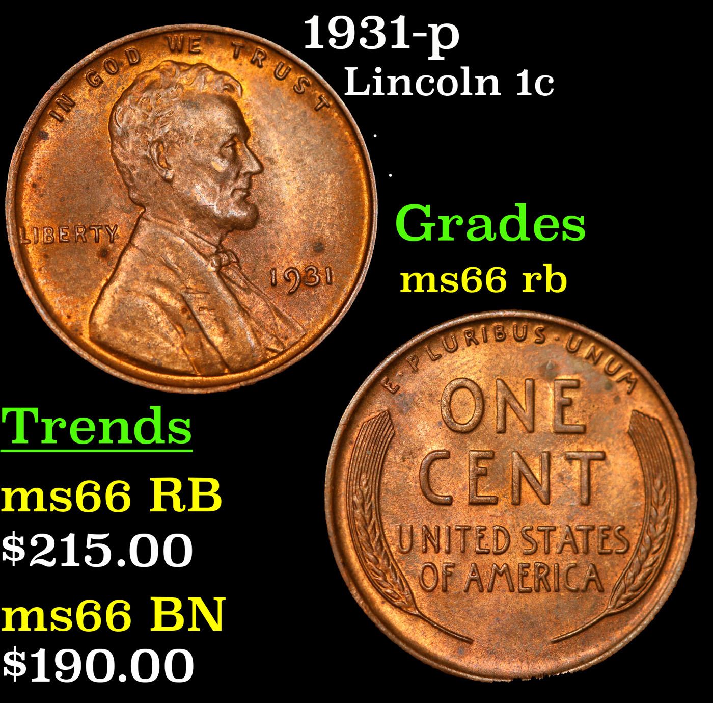 1931-p Lincoln Cent 1c Grades GEM+ Unc RB.