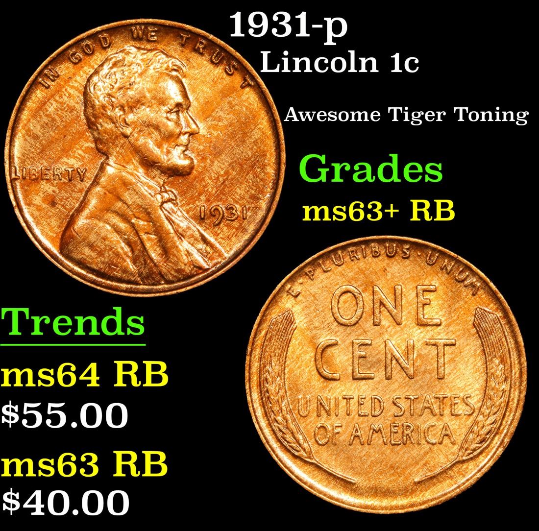 1931-p Awesome Tiger Toning . Lincoln Cent 1c Grades Select+ Unc RB. A Corey's Pick