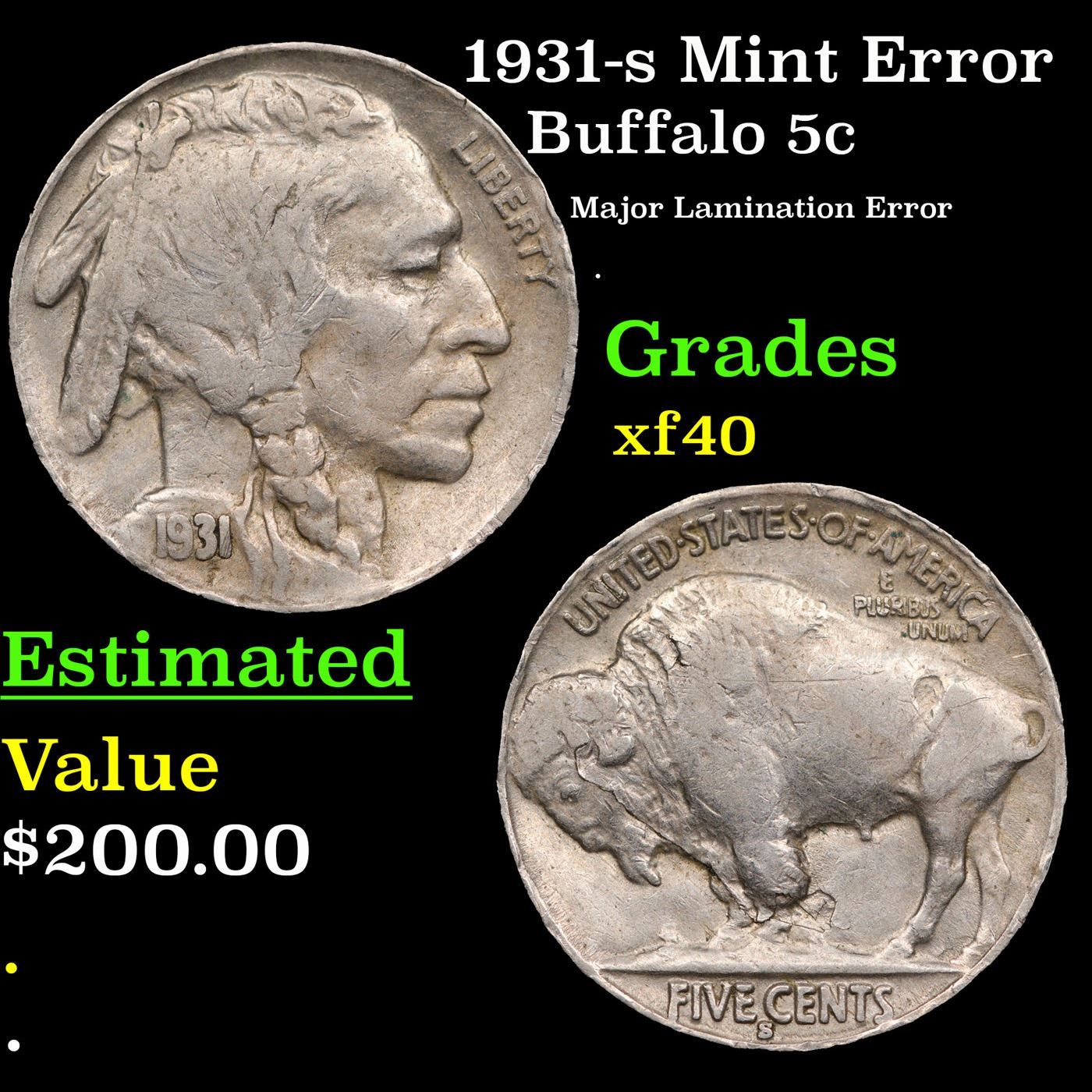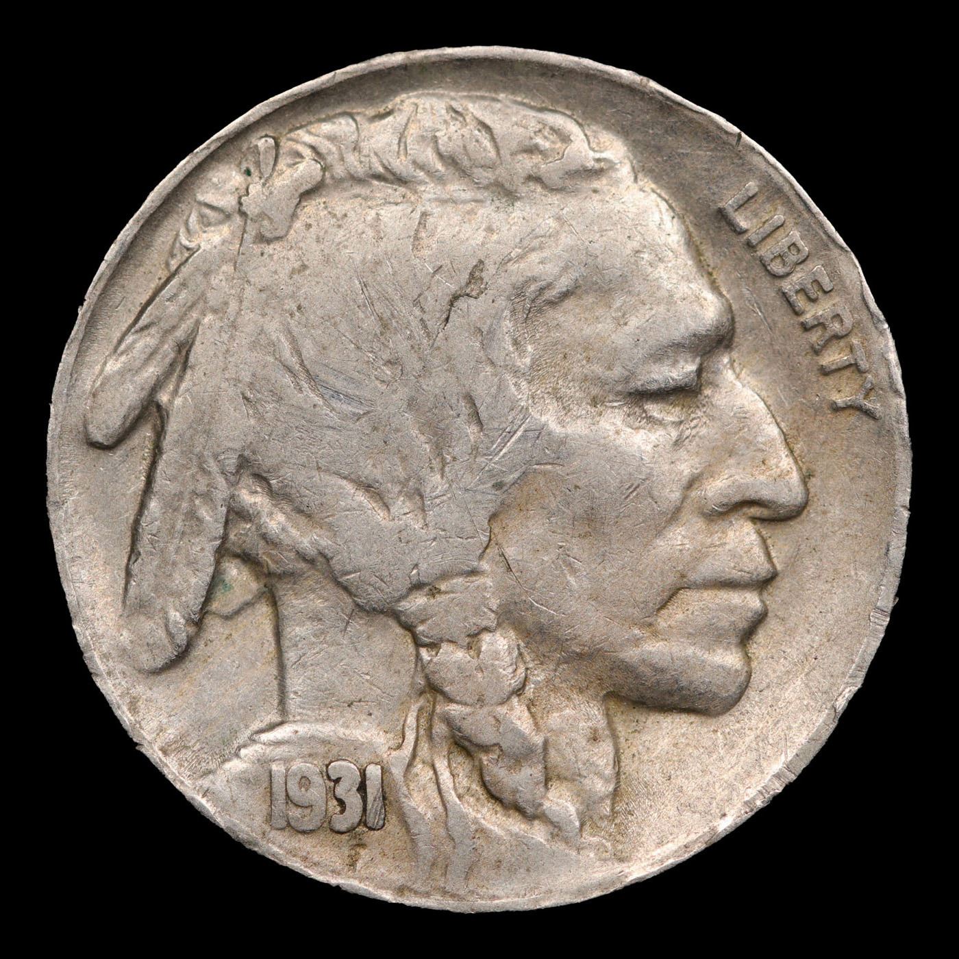 1931-s Mint Error Buffalo Nickel 5c Grades xf.