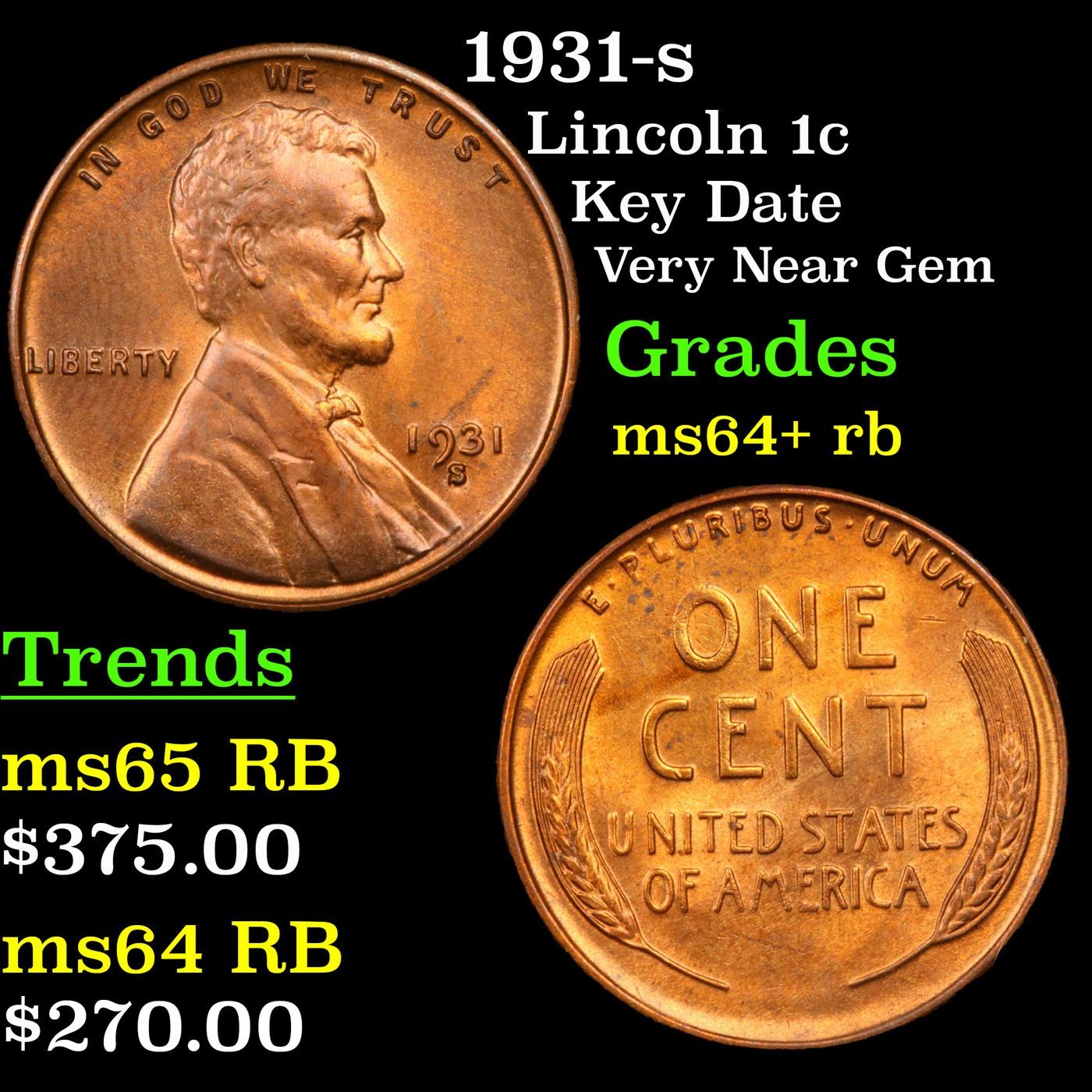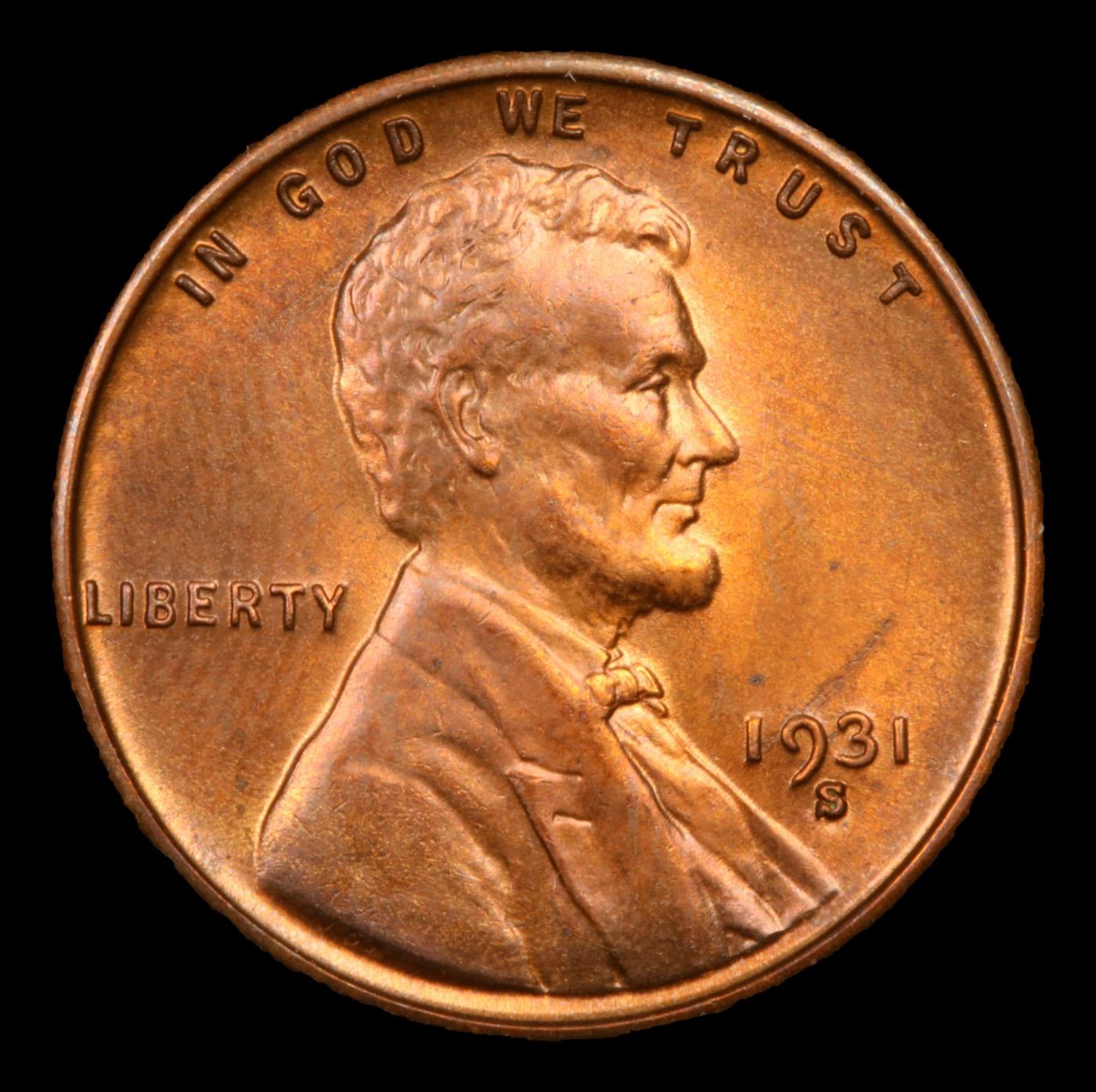 1931-s Lincoln Cent 1c Grades Choice+ Unc RB. Incredibly scarce, Semi Key date.