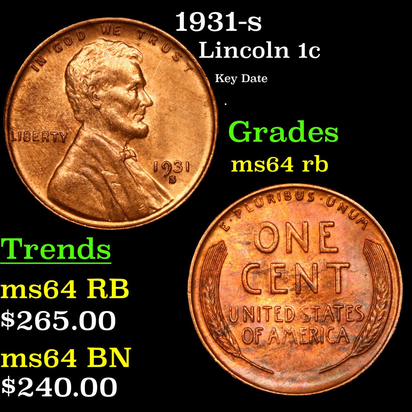 1931-s Lincoln Cent 1c Grades Choice Unc RB. Incredibly scarce, Semi Key date.