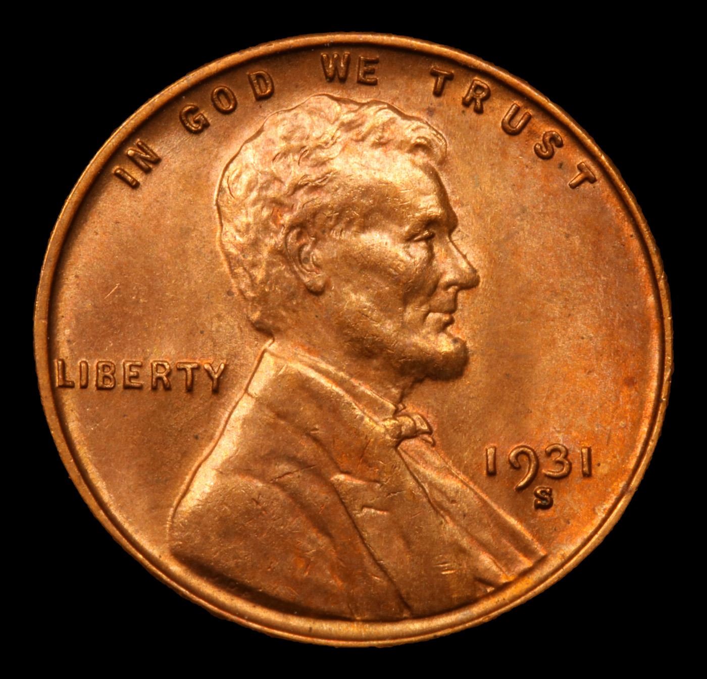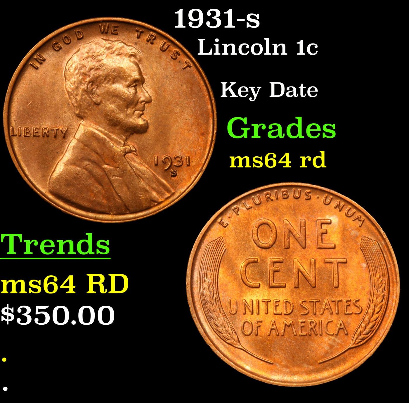 1931-s Lincoln Cent 1c Grades Choice Unc RD. Incredibly scarce, Semi Key date.