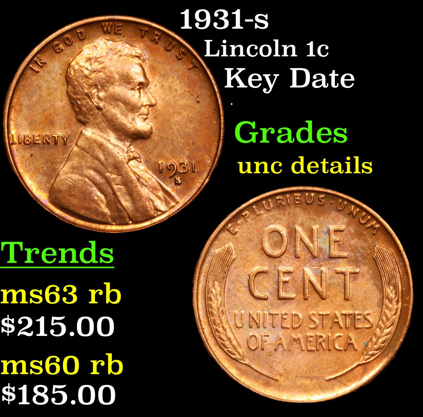 1931-s Lincoln Cent 1c Grades Unc Details. Incredibly scarce, Semi Key date.