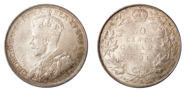 PCGS graded Mint State-65. A lightly toned Gem in shades of pale blue and gray. Great ‘eye appeal’. Superb fields. Simply stated, an outstanding George V fifty cents.