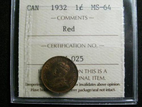 1932 1¢ ICCS MS64 Red. 80% red lustre.