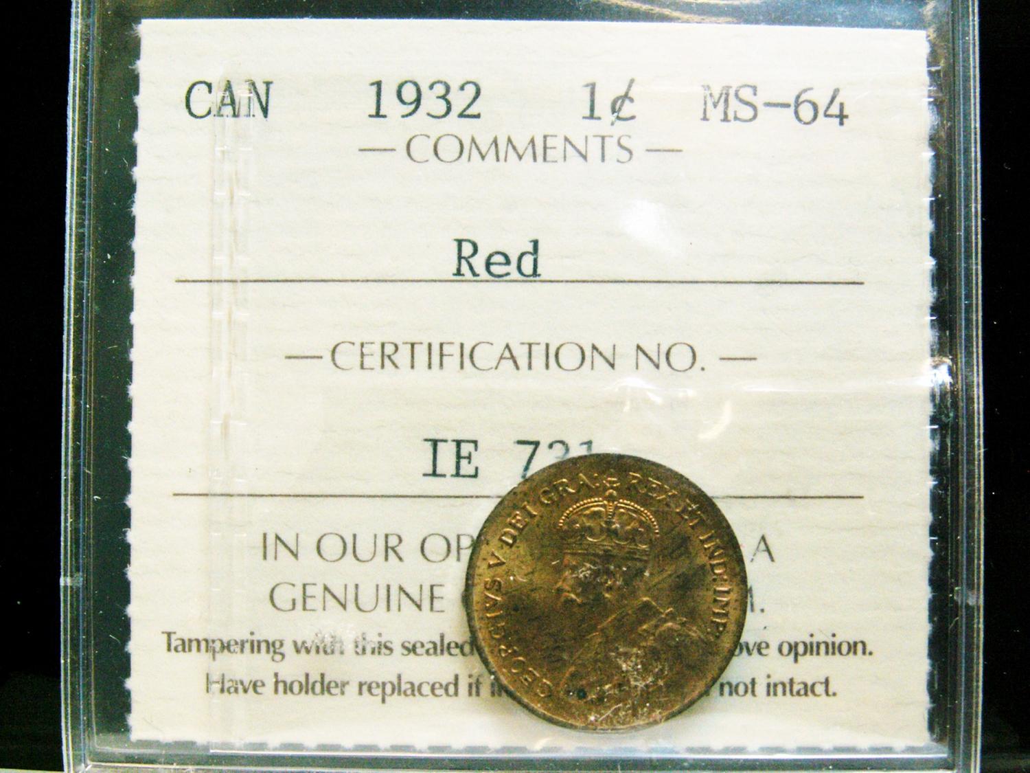 1932 1¢ ICCS MS64 Red