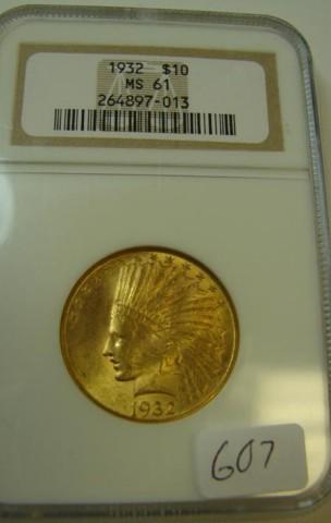 1932 $10.00 Indian Head Gold Coin NGC MS61