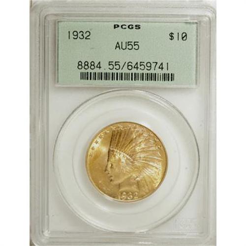<B>1932 $10 AU55 PCGS.</B></I> PCGS Population (43/32396). NGC Census: (12/32592). Mintage: 4,463,000. Numismedia Wsl. Price for NGC/PCGS coin in AU55: $523. (#8884)<BR><BR><B>Coin Engraver:</B> Augustus Saint-Gaudens<BR><BR><b>Shipping:</b> Coins & Currency (<a target="_blank" href="http://www.heritageauctions.com/common/shipping.php">view shipping information</a>)