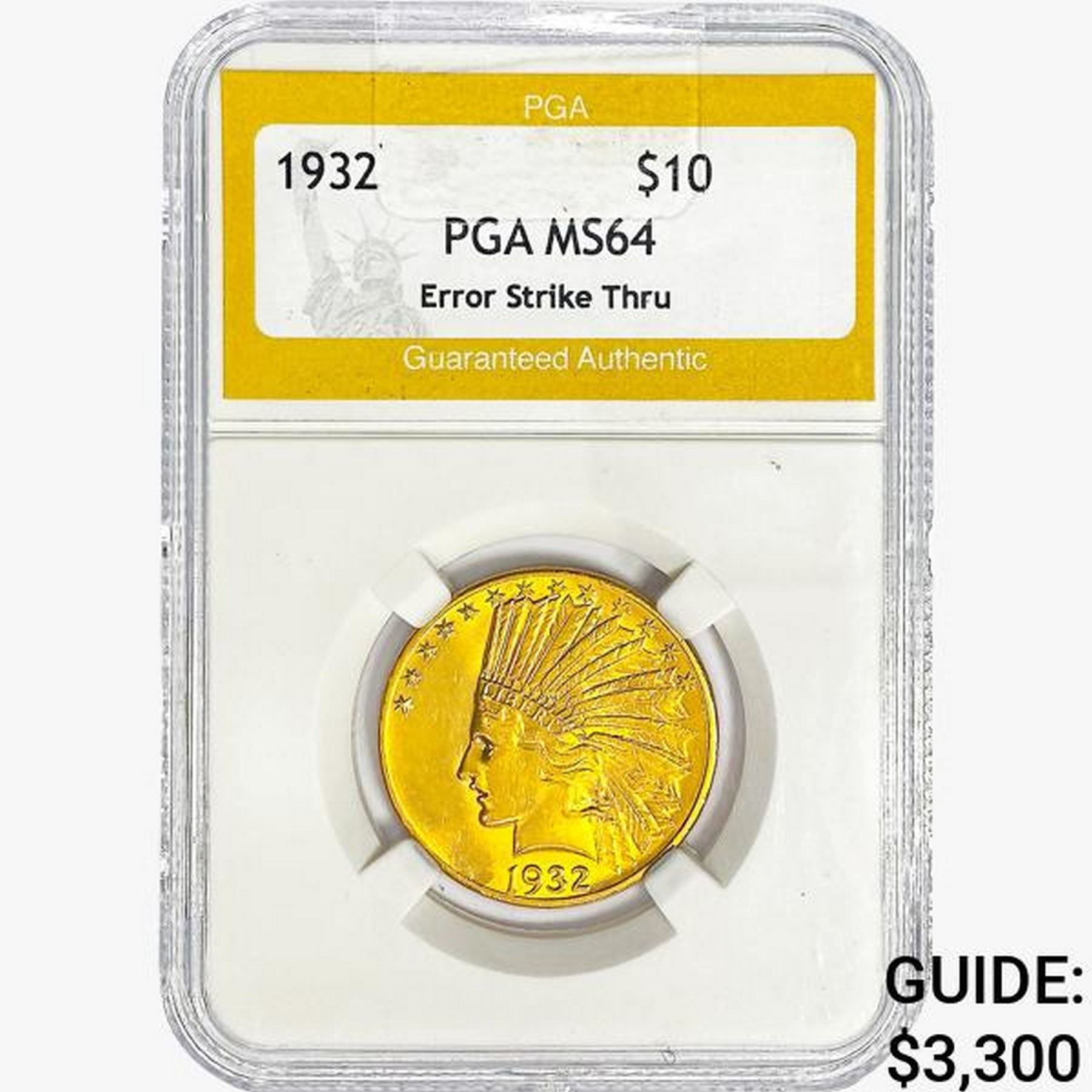 1932 $10 Gold Eagle PGA MS64 Error Strike Thru