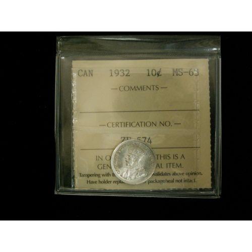 1932 10¢ ICCS MS63, Fully white in colour with lots of lustre