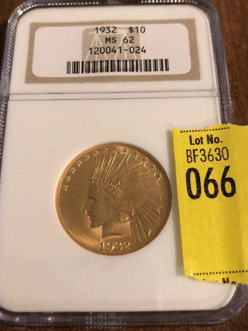 1932 $10 Indian Gold Coin, Graded MS 62 (RL)