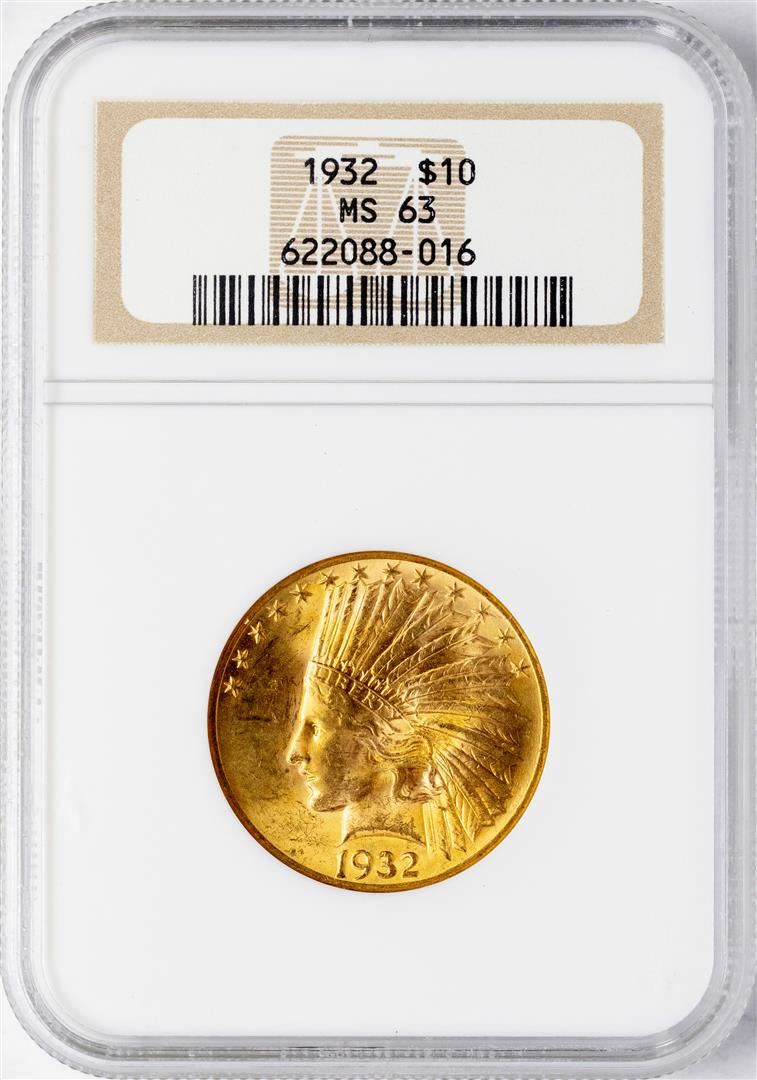 One 1932 $10 Indian Head Eagle Gold Coin NGC MS63. NGC Certified.