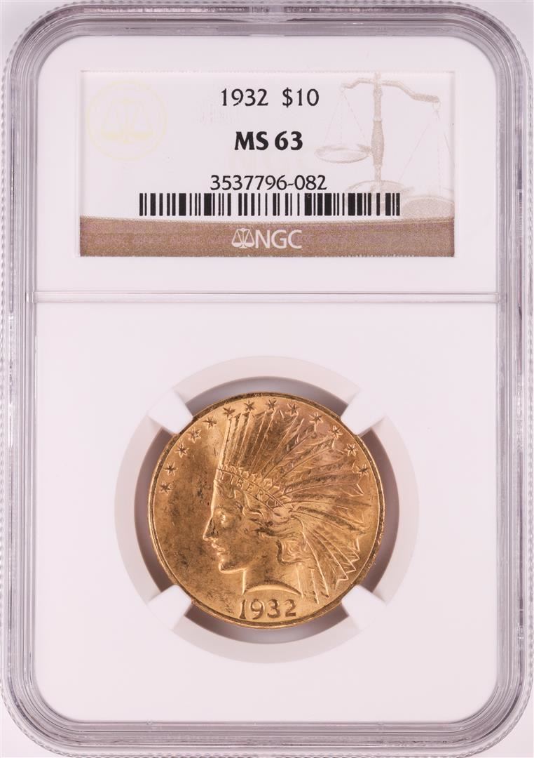 One 1932 $10 Indian Head Eagle Gold Coin NGC MS63. NGC Certified.