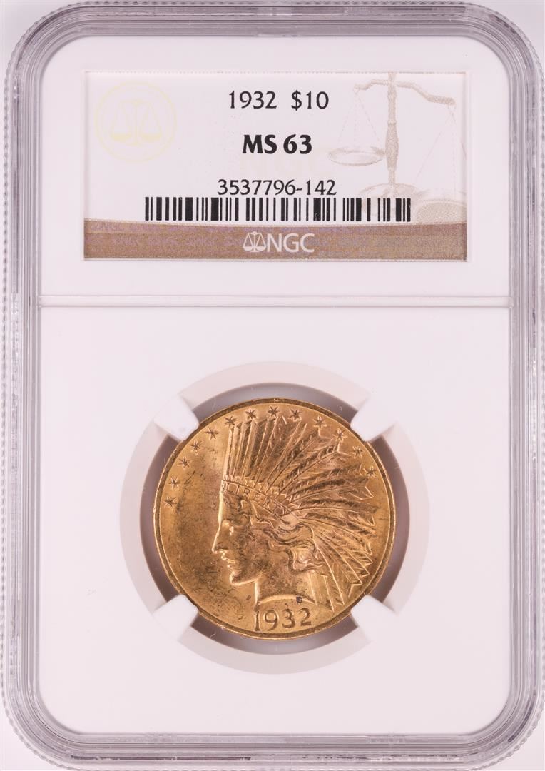 One 1932 $10 Indian Head Eagle Gold Coin NGC MS63. NGC Certified.