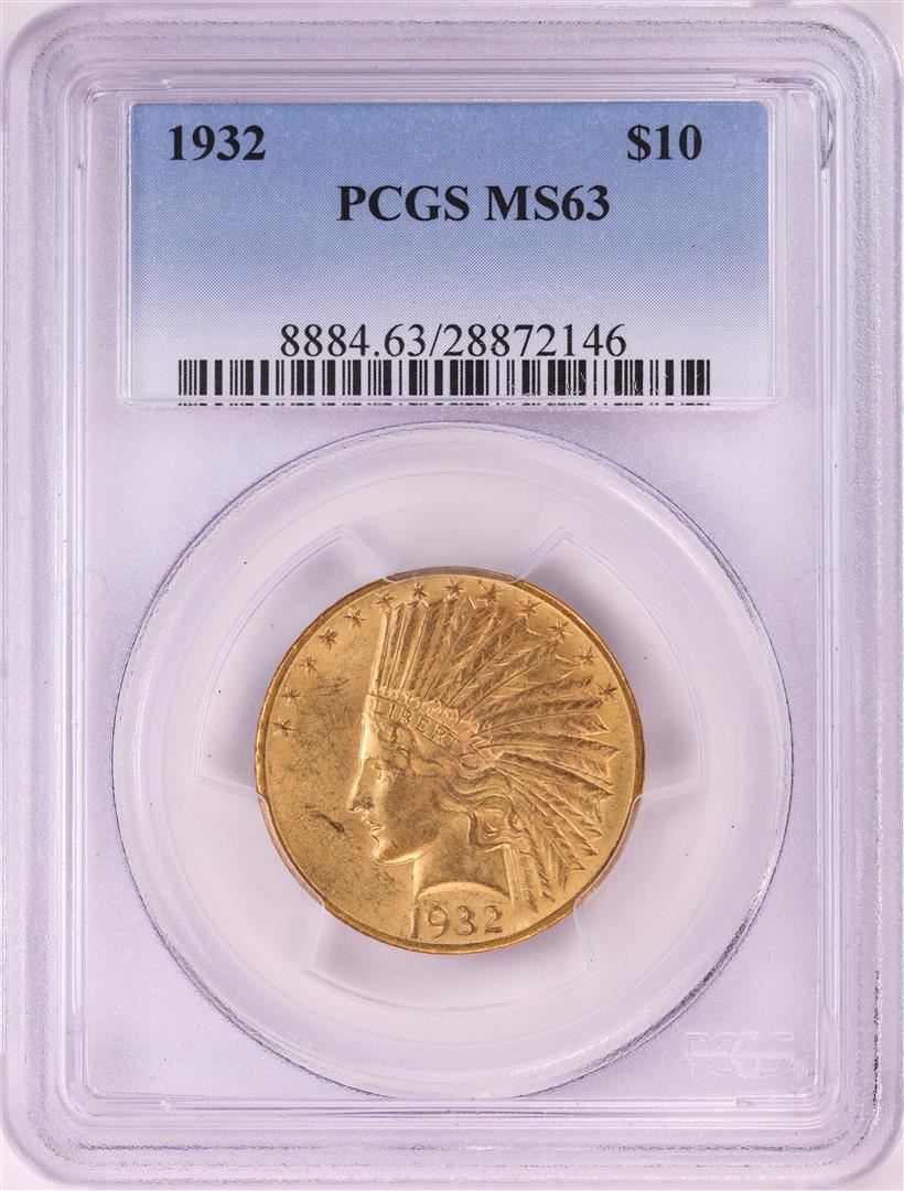 One 1932 $10 Indian Head Eagle Gold Coin PCGS MS63. PCGS Graded.