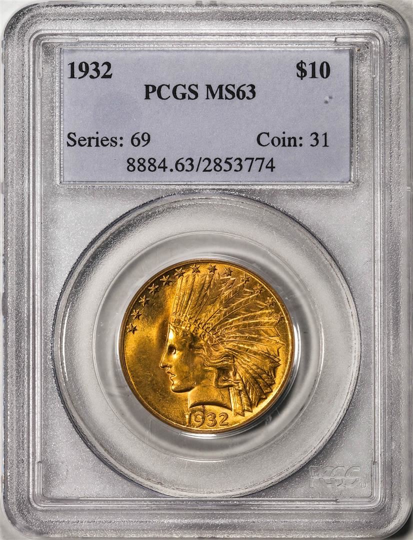 One 1932 $10 Indian Head Eagle Gold Coin PCGS MS63. PCGS Graded.