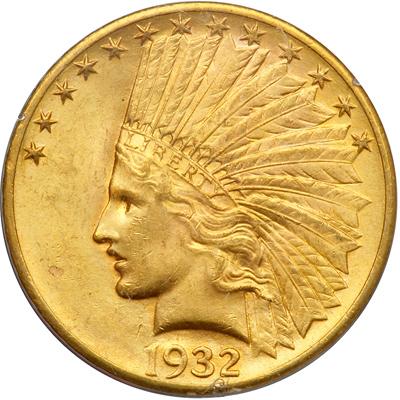 1932 $10 Indian. PCGS graded MS-61 PQ. First generation holder; lovely delicate golden toning (PCGS # 8884) .