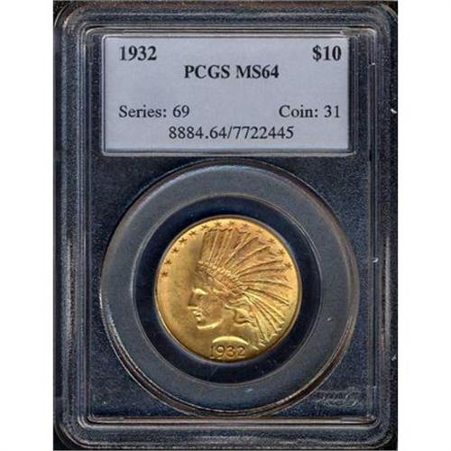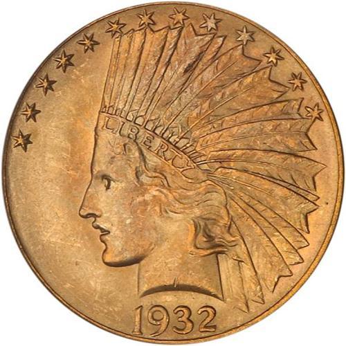 <b>1932 $10 Indian. PCGS graded MS64.</b> Brilliant Uncirculated, nearly gem, with bright lustrous surfaces <b>(PCGS # 8884)</b>