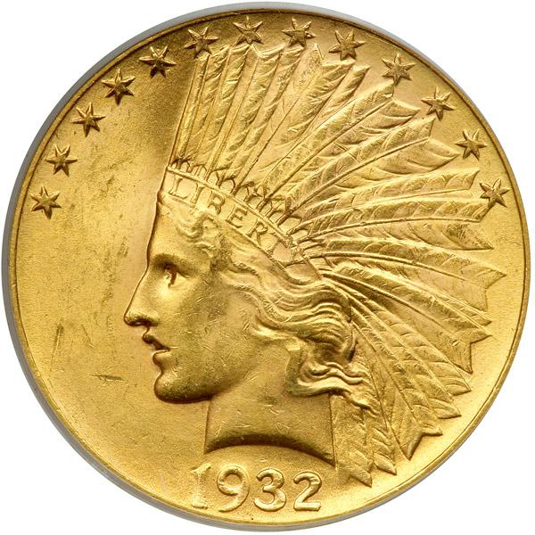 1932 $10 Indian. PCGS graded MS-63. A hint of light gold tone (PCGS # 8884) .