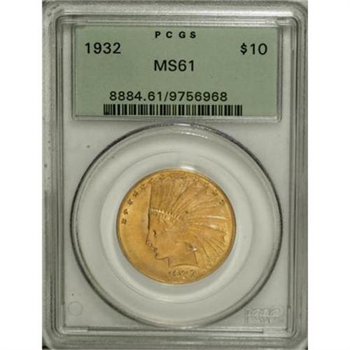 <B>1932 $10 MS61 PCGS.</B></I> PCGS Population (2422/29323). NGC Census: (2524/29822). Mintage: 4,463,000. Numismedia Wsl. Price for NGC/PCGS coin in MS61: $700. (#8884)<BR><BR><B>Coin Engraver:</B> Augustus Saint-Gaudens<BR><BR><b>Shipping:</b> Coins & Currency (<a target="_blank" href="http://www.heritageauctions.com/common/shipping.php">view shipping information</a>)