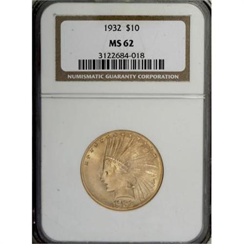 <B>1932 $10 MS62 NGC.</B></I> . NGC Census: (8851/20973). PCGS Population (10122/18979). Mintage: 4,463,000. Numismedia Wsl. Price for NGC/PCGS coin in MS62: $805. (#8884)<BR><BR><B>Coin Engraver:</B> Augustus Saint-Gaudens<BR><BR><b>Shipping:</b> Coins & Currency (<a target="_blank" href="http://www.heritageauctions.com/common/shipping.php">view shipping information</a>)