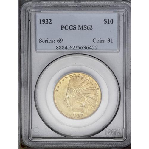 1932 $10 MS62 PCGS. Boldly struck, lightly abraded and 1932[$10] MS62 PCGS.