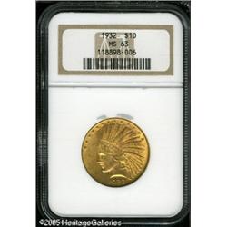 <B>1932 $10 MS63 NGC.</B></I> An attractive peach-gold type coin, light luster grazes are evident, but there are no untoward bagmarks to diminish the eye appeal. Lot:8900