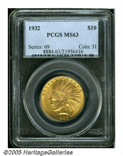 <B>1932<$10> MS63 PCGS.</B></I> Boldly struck and lustrous, with pleasing rich coloration and a single grade-limiting abrasion that rests on Liberty's cheekbone.