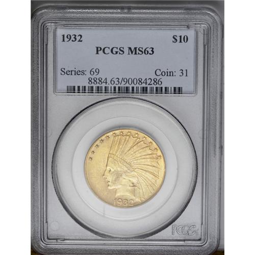 1932 $10 MS63 PCGS. Bright and lustrous, with a two-to 1932