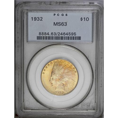 1932 $10 MS63 PCGS. Splashes of orange and olive-gold