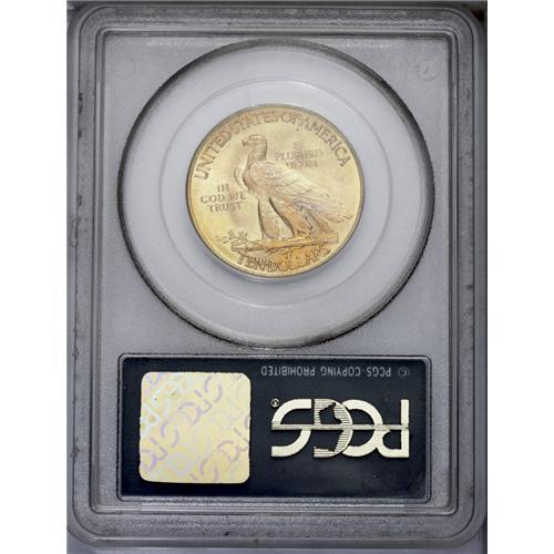 <B>1932<$10> MS63 PCGS.</B></I> Splashes of orange and olive-gold adorn this lustrous and impressive type coin. The strike is sharp aside from the base of the branch. Liberty's face has a couple of minor marks, but the eye appeal is indisputable. Housed in a prior generation holder.