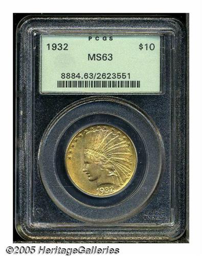 <B>1932<$10> MS63 PCGS.</B></I> Well defined with strong mint luster and pleasing lemon-gold color. Some grade-defining marks are noted on the eagle.