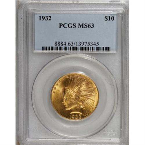 <B>1932 $10 MS63 PCGS.</B></I> PCGS Population (11732/6692). NGC Census: (11294/8811). Mintage: 4,463,000. Numismedia Wsl. Price for NGC/PCGS coin in MS63: $1,260. (#8884)<BR><BR><B>Coin Engraver:</B> Augustus Saint-Gaudens<BR><BR><b>Shipping:</b> Coins & Currency (<a target="_blank" href="http://www.heritageauctions.com/common/shipping.php">view shipping information</a>)