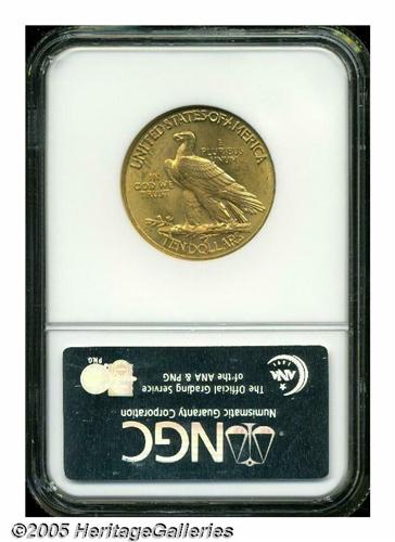 <B>1932<$10> MS64 NGC.</B></I> Peach-gold, lustrous surfaces display light green accents, and a few minute marks on the Indian's cheek and on the reverse that define the grade. A decent strike characterizes the design elements. This is the most common date of the Indian Head eagle.