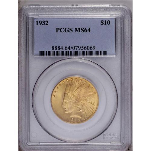 <B>1932<$10> MS64 PCGS.</B></I> A beautiful khaki-gold type coin that features an exceptionally clean obverse. The infrequent tiny mark seen on the reverse does not appear to limit the grade.