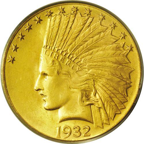 <B>1932<$10> MS64 PCGS.</B></I> A lovely near-Gem example with abundant mint frost over the major devices and only the most trivial evidence of contact.