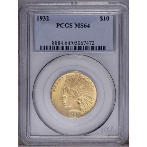 <B>1932<$10> MS64 PCGS.</B></I> A lustrous near-Gem with a gorgeously smooth reverse and no remotely mentionable obverse marks. Sharply struck, even on the sometimes-soft olive branch.