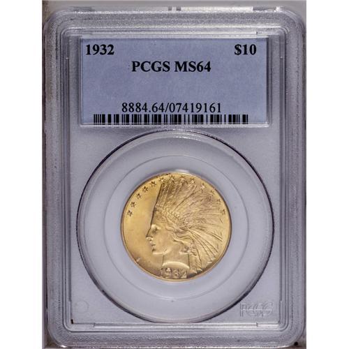 1932 $10 MS64 PCGS. Nicely struck on the devices, and