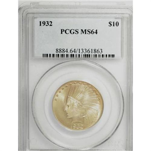 <B>1932 $10 MS64 PCGS.</B></I> A solidly struck and satiny type piece with butter-yellow accents against the apricot-gold of the surfaces. Pleasingly preserved overall, though a handful of faint marks on each side preclude a finer designation.<BR><BR><B>Coin Engraver:</B> Augustus Saint-Gaudens<BR><BR><b>Shipping:</b> Coins & Currency (<a target="_blank" href="http://www.heritageauctions.com/common/shipping.php">view shipping information</a>)