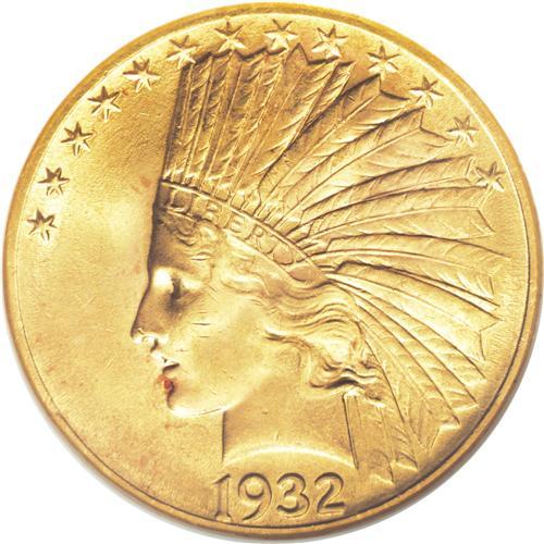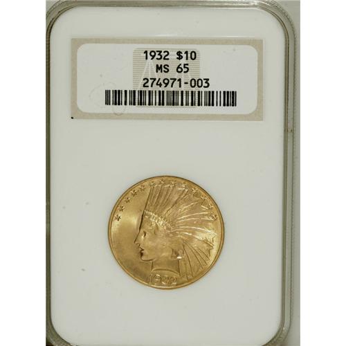 1932 $10 MS65 NGC. The bright, yellow-gold surfaces of