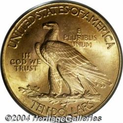 <table><tr><td><table><tr><td>1932 $10 MS65 PCGS. Both sides of this shimmering Gem representative are attractively layered in natural orange patina. Just a few minor marks on the obverse separate this high quality Indian from Superb status. <BR><BR><B>Important notice:</B> Heritage usually auctions material at the rate of 200-250 lots per hour. On some occasions eBay Live bid software or the Internet may not be able to keep up with the pace of the auction. We recommend placing a realistic absentee bid now as insurance to avoid disappointment. Occasionally the auctioneer may eliminate or reject an eBay Live bid, and the auctioneer may also reopen a lot after the close of the eBay live bidding (usually because we missed an audience bid), and may reject your bid even if it shows you as the winning bidder. By bidding via eBay Live, you agree that Heritage may award the lot to another bidder at its sole discretion under the circumstances described above or any other reasonable circumstances. Since eBay bids are not shown to us until we open the lot on the floor, we treat those bids just like floor bids. In most cases the floor responds before the eBay bid is presented to us, due to Internet lag time, so for consistency we have made it a policy that floor bids are always considered first over tie eBay live bids. Also please note that all Heritage lots purchased through eBay Live carry a 20% Buyer's Premium. Please make sure you read the Terms and Conditions before you bid. <BR><BR><B>IMPORTANT ANNOUNCEMENT ABOUT RESERVES:</B> Heritage now divulges all reserves on its web site 7 days before every auction. If you want to know whether the reserve on this lot has been met, and if not, what the reserve amount is, please visit this lot page on the HeritageCoin.com web site, or email: bid@HeritageGalleries.com </span></font></td></tr></table></td></tr></table>