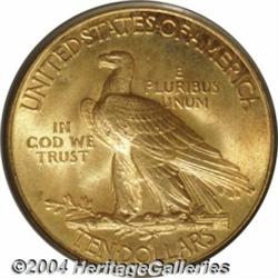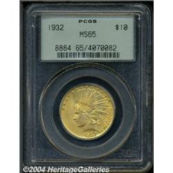 <B>1932<$10> MS65 PCGS.</B></I> Sharply struck with attractive orange patina and few imperfections. A Gem example of the most available Indian Eagle issue. <BR><BR><B>Important notice:</B> Heritage usually auctions material at the rate of 200-250 lots per hour. On some occasions eBay Live bid software or the Internet may not be able to keep up with the pace of the auction. We recommend placing a realistic absentee bid now as insurance to avoid disappointment. Occasionally the auctioneer may eliminate or reject an eBay Live bid, and the auctioneer may also reopen a lot after the close of the eBay live bidding (usually because we missed an audience bid), and may reject your bid even if it shows you as the winning bidder. By bidding via eBay Live, you agree that Heritage may award the lot to another bidder at its sole discretion under the circumstances described above or any other reasonable circumstances. Since eBay bids are not shown to us until we open the lot on the floor, we treat those bids just like floor bids. In most cases the floor responds before the eBay bid is presented to us, due to Internet lag time, so for consistency we have made it a policy that floor bids are always considered first over tie eBay live bids. Also please note that all Heritage lots purchased through eBay Live carry a 20% Buyer's Premium. Please make sure you read the Terms and Conditions before you bid. </span></font></tr></table></td></tr></table>