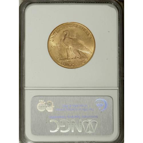 <B>1932 $10 MS66 NGC.</B></I> There is no doubt that this issue is the most common Indian eagle, with a mintage of well over 4 million coins. The reason for such a large mintage, at a time when gold coins were about to be discontinued, is not known, but this issue does provide an opportunity for collectors to obtain a gold coin from this decade at a reasonable price. Only eagles and double eagles were coined during the 1930s, and every other issue is a major rarity. This piece has radiant and frosty yellow-gold luster with nearly flawless surfaces. Only seven finer pieces have been certified by NGC (4/07).<BR><BR><b>Shipping:</b> Coins & Currency (<a target="_blank" href="http://www.heritageauctions.com/common/shipping.php">view shipping information</a>)