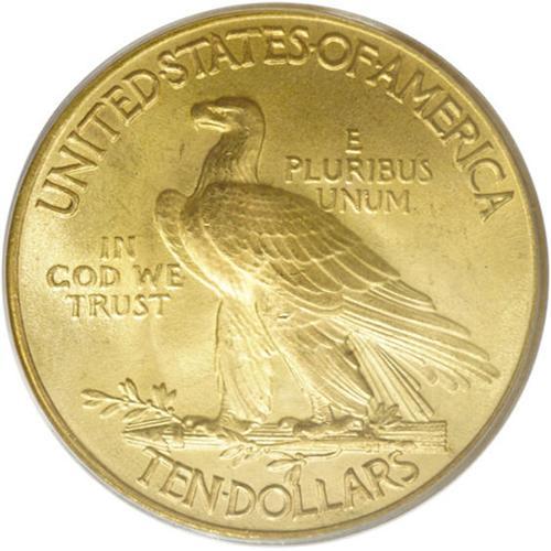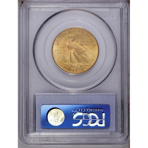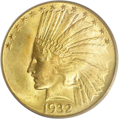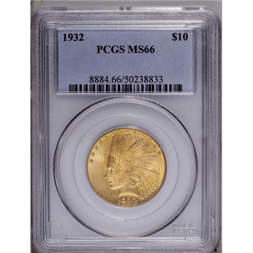<B>1932<$10> MS66 PCGS.</B></I> Shimmering luster illuminates the richly toned, matte-like surfaces. A variegated scheme of mint-green, orange, and pink coloration adorns each side. In addition to sharp striking details, the coin's most impressive feature is its outstanding luster. Popular as the last collectible year of this type. Population: 67 in 66, 1 finer (2/06).
